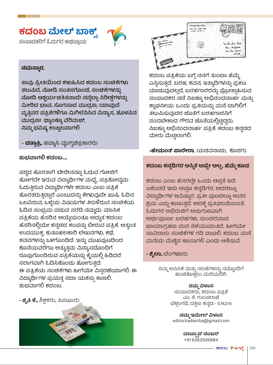 ನಿಮ್ಮ ಓದು ಸುಖಕರವಾಗಿತ್ತೆಂದು ಭಾವಿಸಿದ್ದೇವೆ. ಕದಂಬದ ಕುರಿತು ನಿಮ್ಮ ಅನಿಸಿಕೆ ಮತ್ತು ಸಲಹೆಗಳನ್ನು ನಮ್ಮೊಂದಿಗೆ ಹಂಚಿಕೊಳ್ಳಲು ಮರೆಯದಿರಿ.